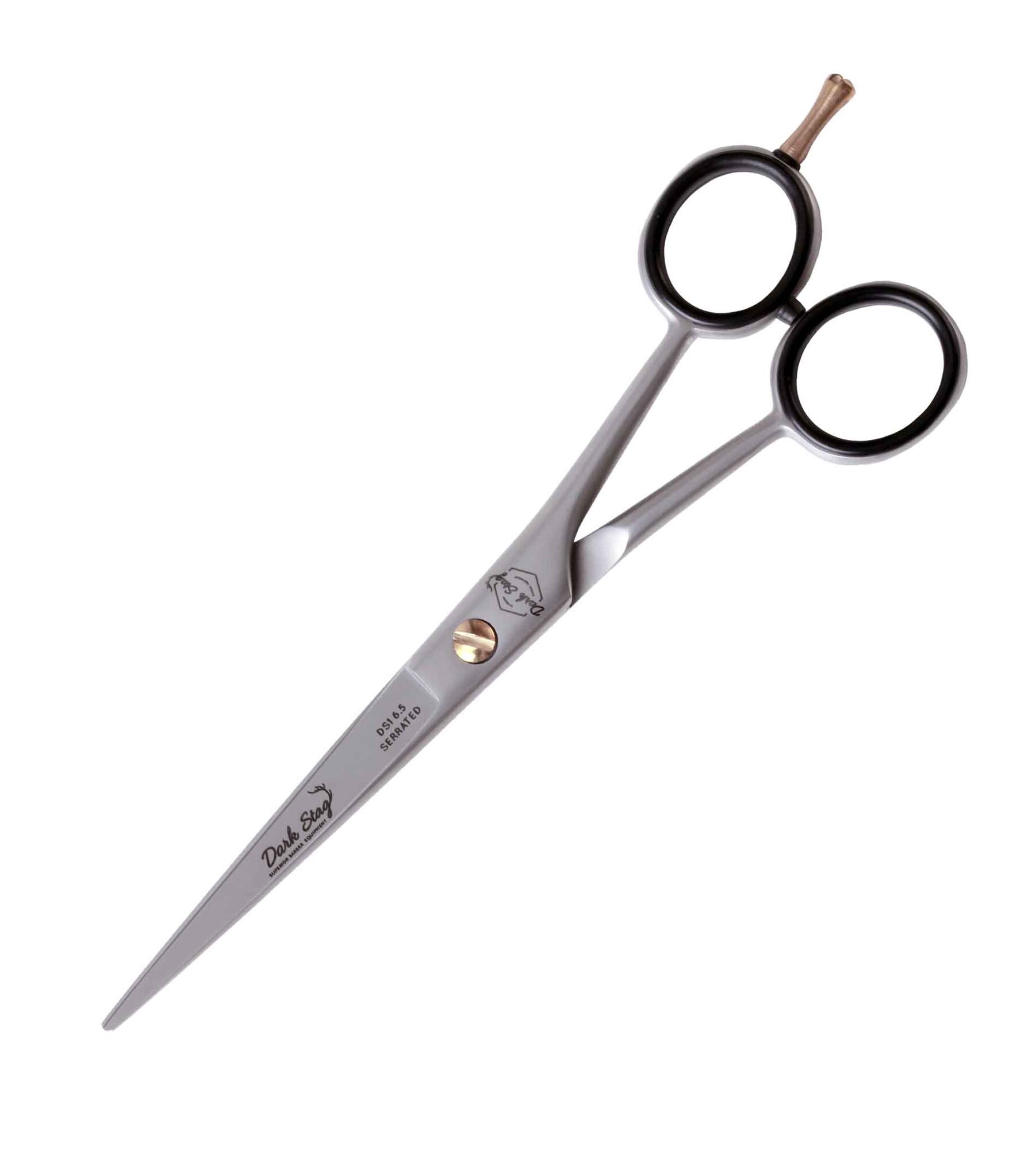 Made from heat-treated stainless steel, this medium-weight barber shears will last for a long time. One micro-serrated blade ensures a perfect and reliable cut right up to the tip. The innovative screw system of German construction ensures a smooth feeling when working. Removable finger rest.