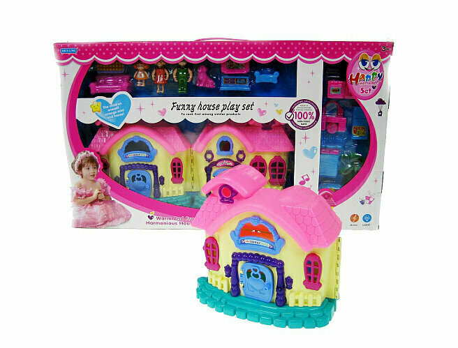 Duży domek dla lalek z akcesoriami. Do zestawu dołączono: laleczki, pieska, fotel, kanapę, telewizor, szafki, stół, lodówkę, łóżko, stanowisko kuchenne, palemki i toaletkę. Kolorowy domek jest rozkładany. Posiada otwierane drzwi. Odznacza się bajkowym wyglądem. Dziecko będzie mogło odgrywać...
