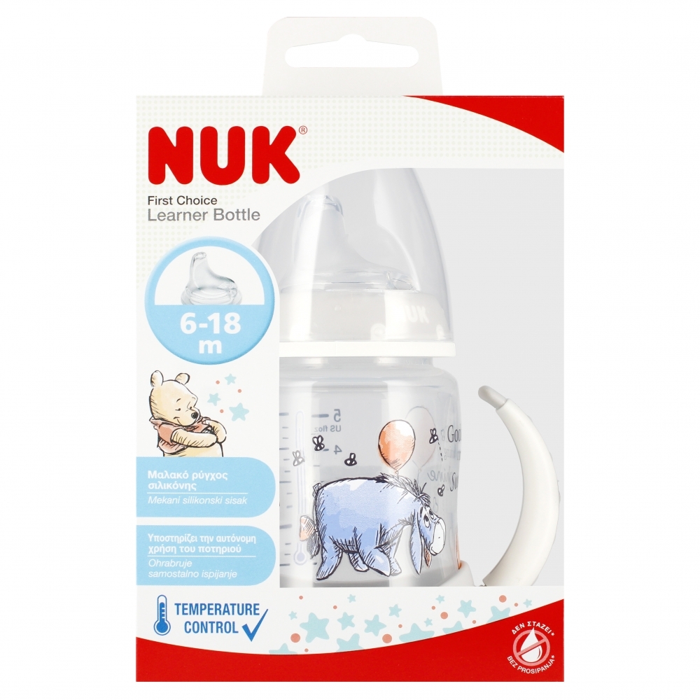 NUK Butelka 150 ml 6m z uchwytem First Choice Osiołek popielata 10743945