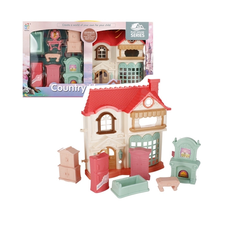 Dům pro panenky, má pohyblivé prvky v podobě pohyblivých dveří. Sestava obsahuje domeček, skříň, toaletní stolek, puf, komodu, krb, lednici a vanu. Rozměry balení jsou 39x22x7cm. Určeno pro děti ve věku: 3+. prečítať celé