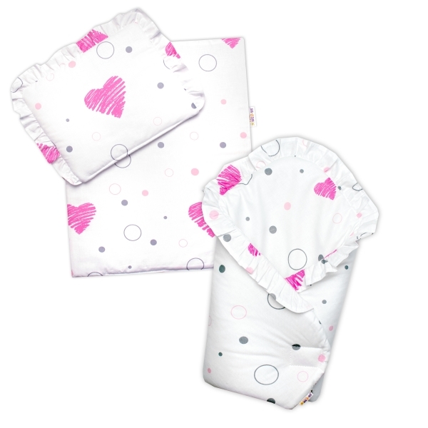 Luxusní sada pro panenku 3D, Baby Nellys, zavinovačka, peřinka a polštářek, I love Girl
