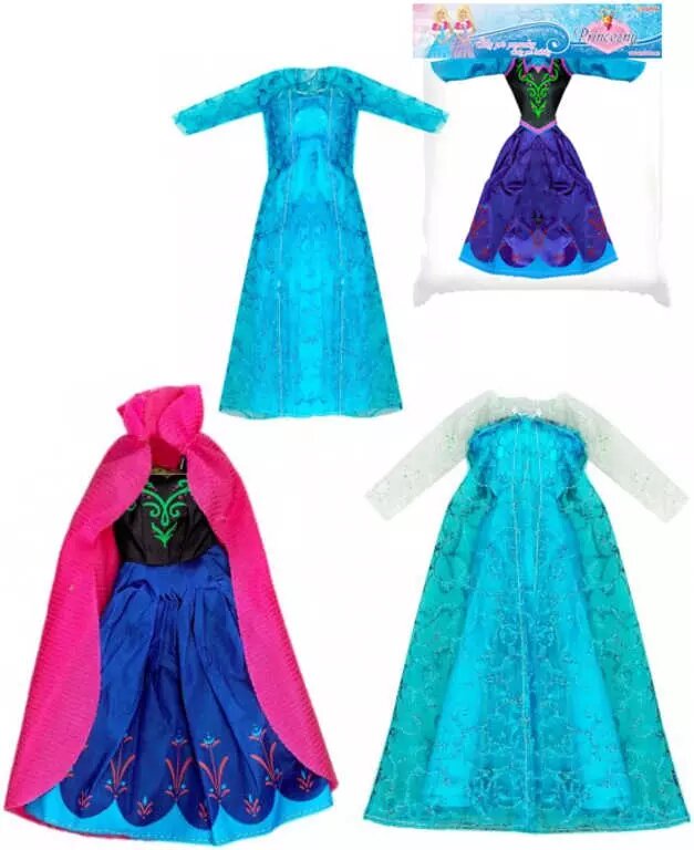 Oblečení pro panenku modré/růžové šatičky zimní království 1 kus