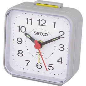 BudíkNapájení z bateriePouzdro ve tvaru čtvercePlastové pouzdroŠedá barva pouzdraRučičkový ciferníkBílá barva ciferníkuCiferník s arabskými číslyBudík prečítať celé