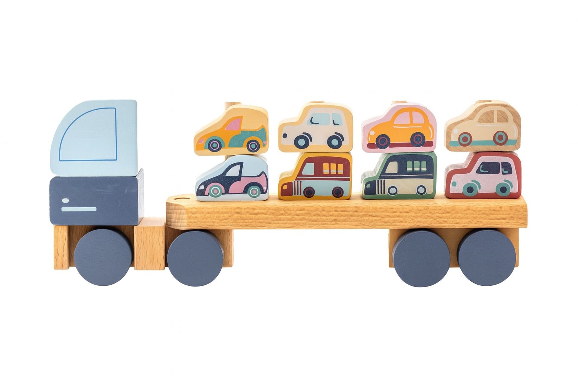 CUBIKA Pastel 15924 Kamion s auty - dřevěná skládačka 12 dílů