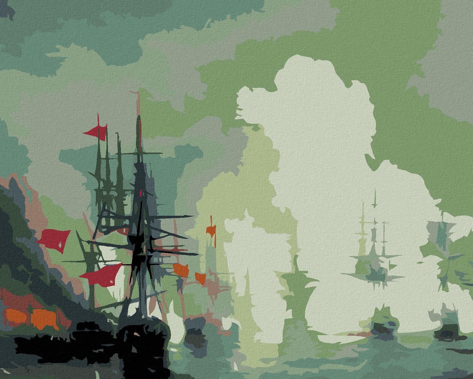Malování podle čísel - LODĚ V MLZE - 80x100 cm, vypnuté plátno na rám