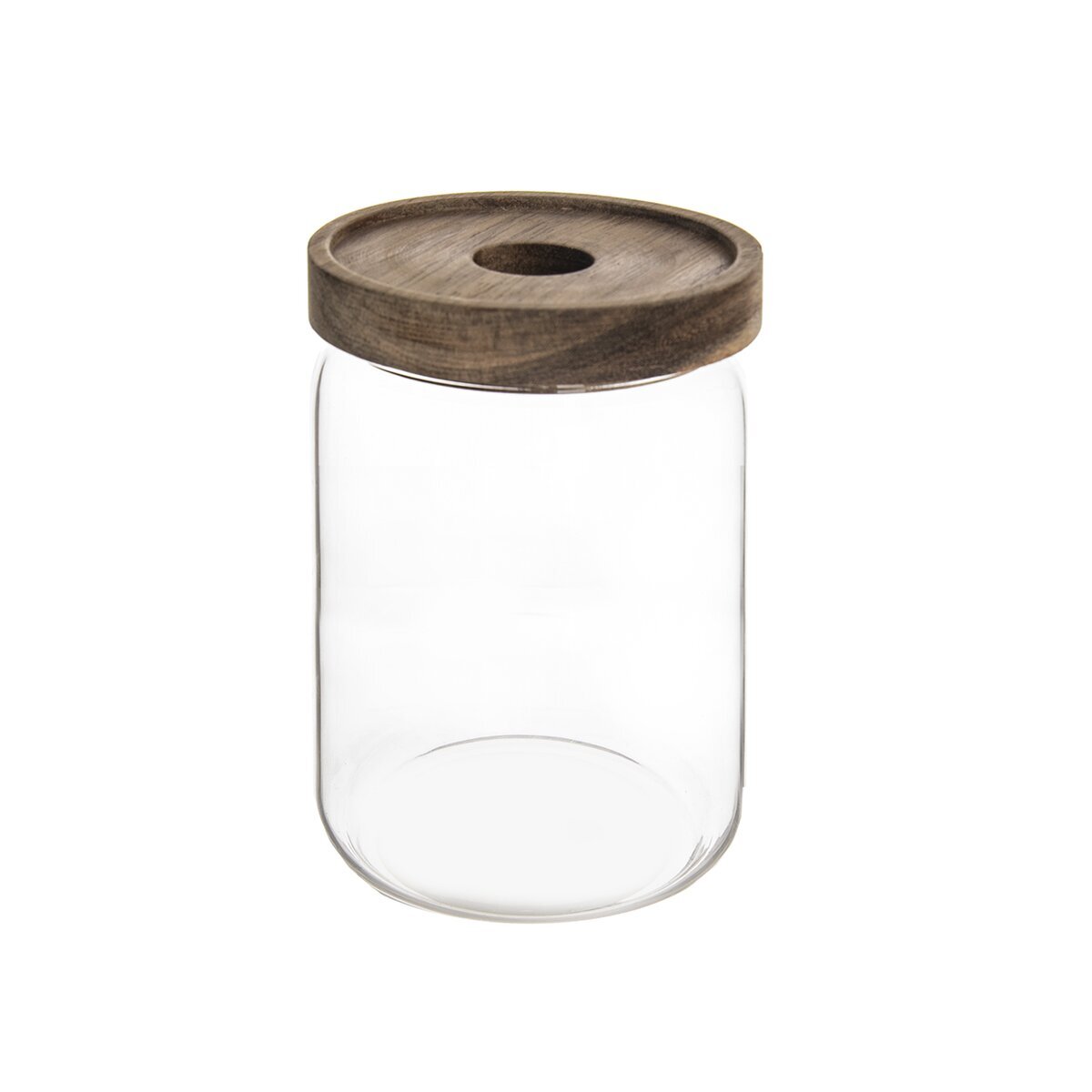 Dóza s víčkem s těsněním na uskladnění potravin. Zachová aroma i chuť vložených potravin, potraviny nezvlhnou. Materiál: borosilikátové sklo, akáciové dřevo, silikon – těsnění. Rozměry: objem 0,97 l, pr. 10 cm, v. 15,5 cm. Do myčky je vhodná pouze skleněná část, není vhodná do MVT.