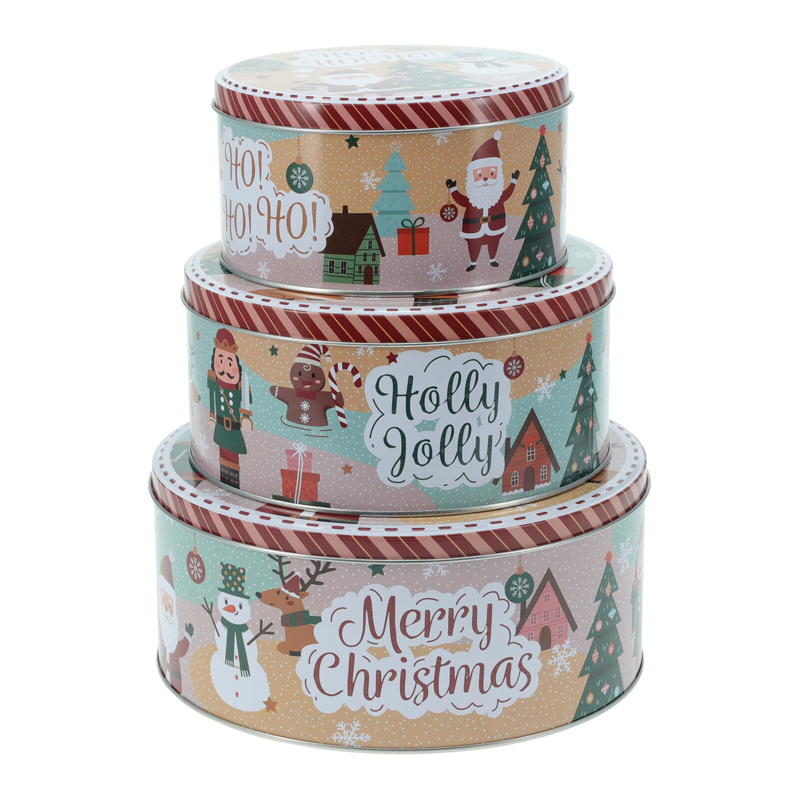 Dóza plechová kulatá VÁNOČNÍ, sada 3díl.sada obsahuje 3 dózy:- malá pr. 13,5 x 8 cm- střední pr. 15,1 x 10 cm- velká pr. 18 x 12,1 cmmateriál: plechmix 3 dekorů: Santa, Louskáček, sněhulákSada kulatých vánočních dóz na uskladnění potravin, které pomohou zachovat kvalitu, chuť i aroma.