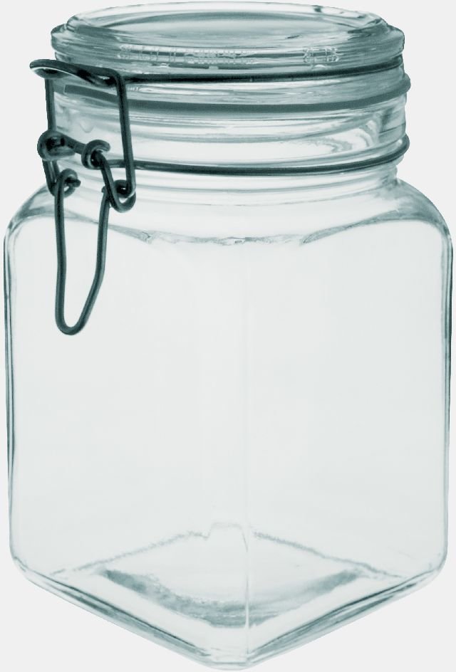 Skleněná dóza 1l se skleněným víčkem a kovovým zavíracím patentem, víčko je osazeno gumovým těsněním. Není vhodná do myčky nádobí. Materiál - sklo, kov. Rozměry - objem 1l, výška 16,8cm, průměr 9,6cm. prečítať celé