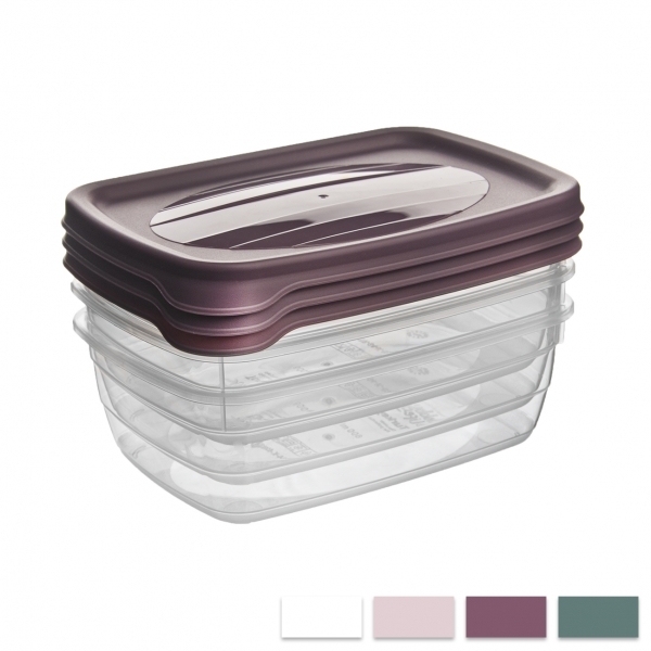 Dóza s víčkem obdélníková. Sada 3 ks. Materiál: plast. Barevný assort víček. Rozměry: 13x9,5x4,5 cm, objem 0,3 l. prečítať celé