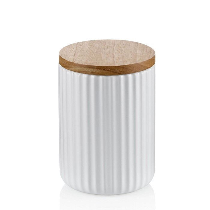 keramická dóza v matné bílé barvělíbivý žebrovaný design lahodí nejen oku, ale zároveň má svoji funkční podstatu, toto provedení je pevnější, odolnější vůči nárazům nebo poškrábánídřevěné víčko se silikonovým těsněnímjednoduché čištění, lze umývat v myčce nádobírozměry: 10 x 14 cmobjem 0,75...