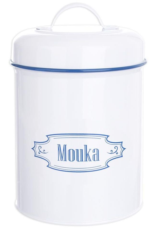 Stylová kulatá plechová dóza s modrým nápisem MOUKA a praktickým víčkem. V krásném retro stylu. V nabídce najdete i další dózy ve stejné edici Blue line.Materiál - plech. Rozměry - průměr 13 cm, výška 20,5 cm. prečítať celé