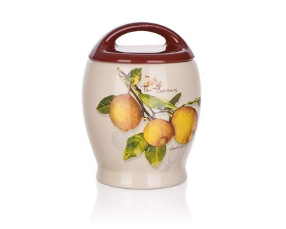 Táto keramická dóza s priemerom 15 cm zaujme krémovou glazúrou zdobenou motívom citróna, ktorý dodá vašej kuchyni príjemnú sviežosť a optimistický nádych. Viečko v hnedej farbe krásne kontrastuje a zabezpečuje pevné uzavretie obsahu, čím chráni potraviny pred vlhkosťou a nečistotami.