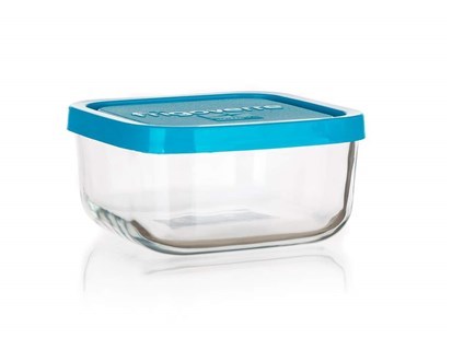 BORMIOLI Dóza skleněná FRIGOVERRE 19 x 19 cm, modré víčko