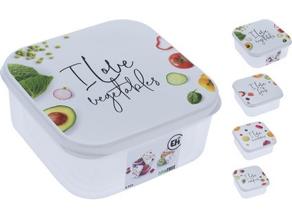 Dóza čtvercová s potiskem, sada 4díl.(0,3 + 0,45 + 0,65 + 1,0 l) PH.