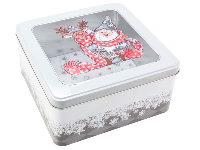 DÓZA NA CUKROVÍ 17,7X17,7X8,6CM SANTA A JELEN