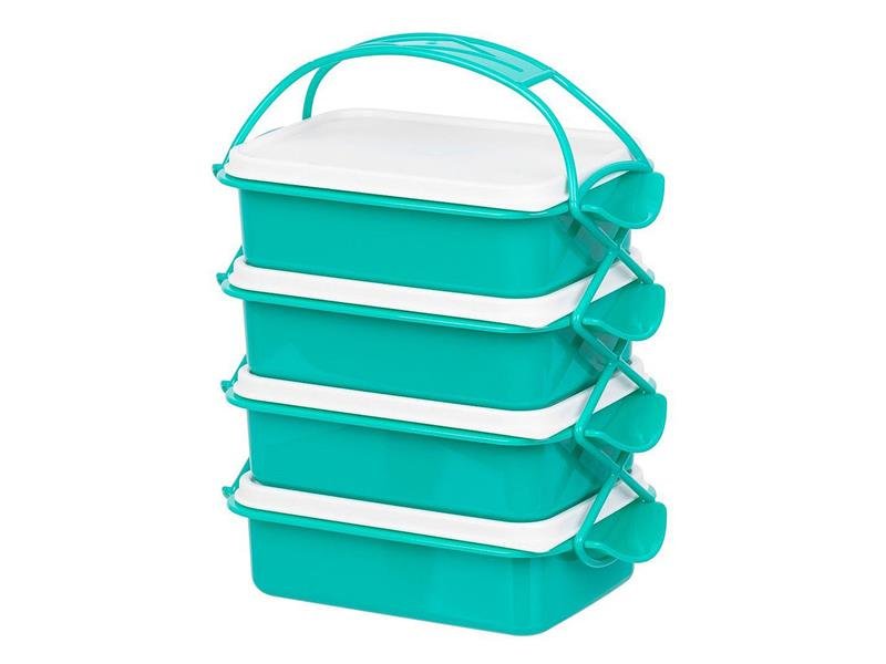 Plastový jídlonosič MagicHome je určen k přenášení potravin a jídel. Skládá se ze 4 misek, které mají litrový objem. Rozměry misek jsou: 24,3x14,6x29,5 cm. Jídlonosič můžete mýt v myčce na nádobí, odkládat v chladničce i mrazničce. Misky se jednoduše sepínají plastovou sponou.