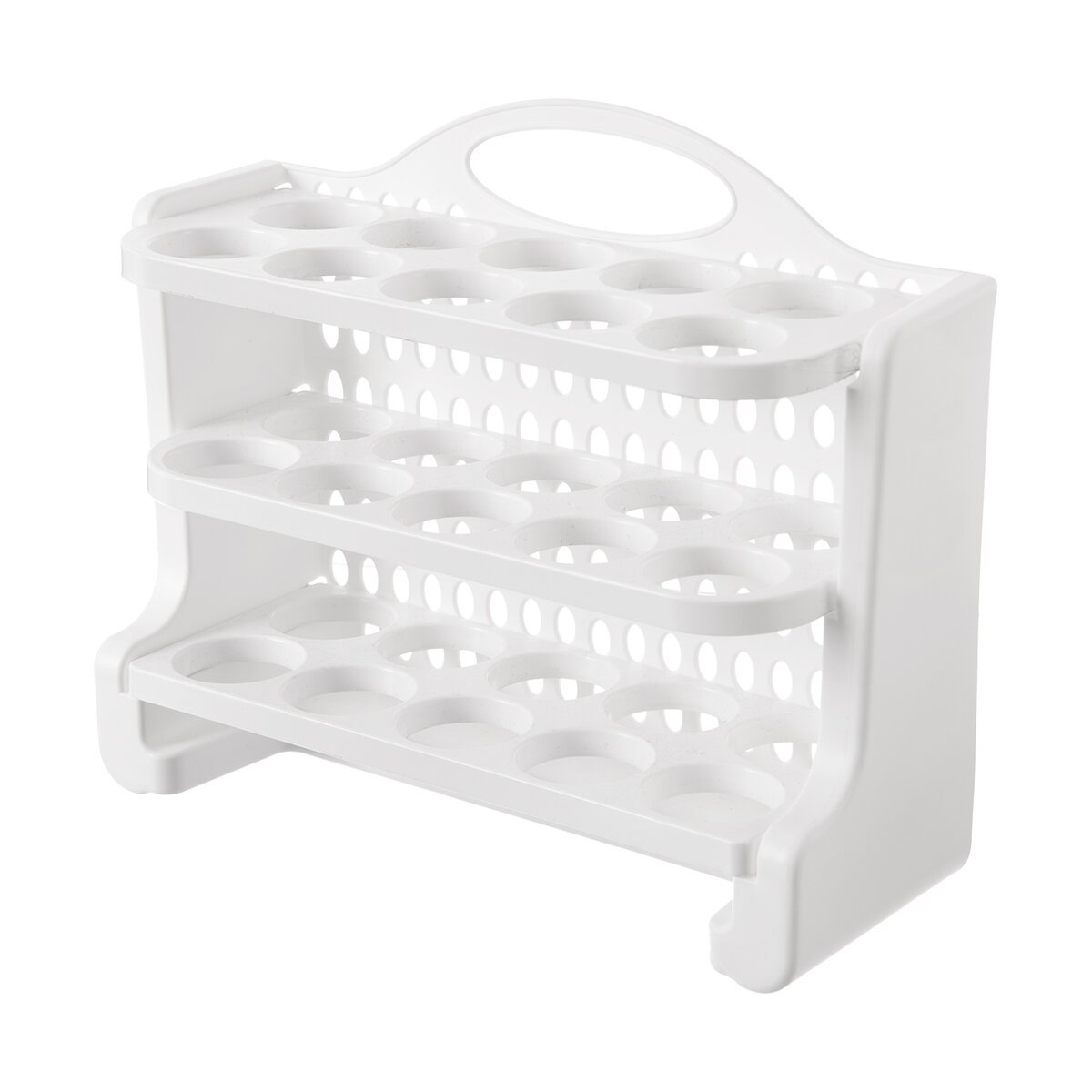 Tento stojan je skvelým riešením na udržanie vajec v poriadku priamo na dverách chladničky. Vďaka trom poschodovým priehradkám sú vajcia uložené prehľadne a ušetríte miesto. Ak máte plné horné poschodie, jednoducho ho zdvihnete a ľahko získate prístup k spodným vajíčkam bez nutnosti vybrať celý stojan. Praktický dizajn zabraňuje zbytočnému poškodeniu a uľahčuje skladovanie vajec v domácnosti.