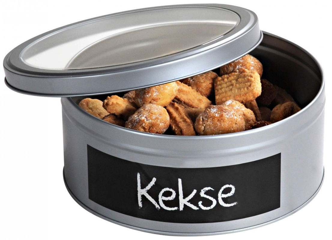 KESPER Kovová dóza s průhledným víkem a popisovací etiketou, průměr 20 cm