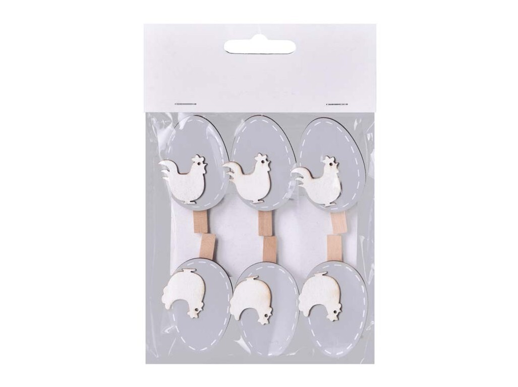 Dekorace dřevo 6ks 35x60 mm vajíčko kolíček šedobílé, mix