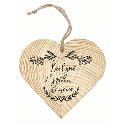 Dekorační dřevěné srdce s textem: kuchyně je srdcem domova. Originální dárek k narozeninám nebo svátku pro maminku, babičku, přítelkyni nebo manželku. Drobná dekorace pro váš byt či dům.