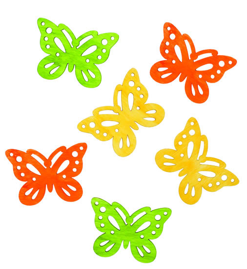 Drevené výseky 4cm - motýle oranžovožltý mix 6ks