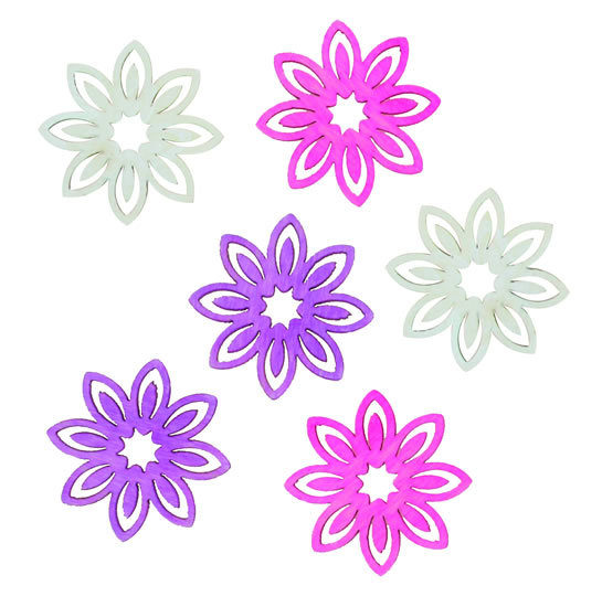 Drevené výseky 6cm - kvety fialový mix 6ks