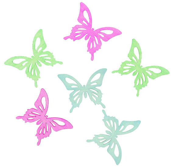 Drevené výseky 6cm - motýle zelený mix 6ks
