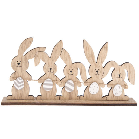 Drevená veľkonočná dekorácia - Zajačikovia 22 x 10,5 cm