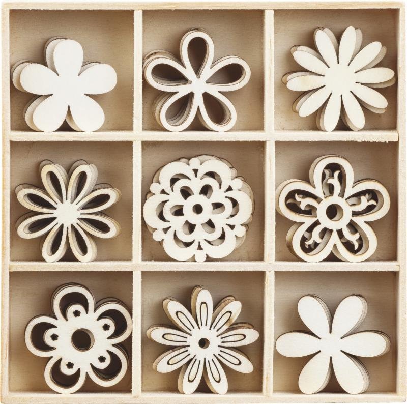 HEYDA Sada drevených dekorácií v krabičke - kvety