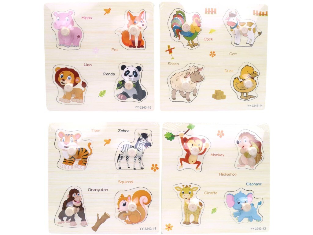 Dřevěná vkládačka, 4 druhy, 15 x 15 cm