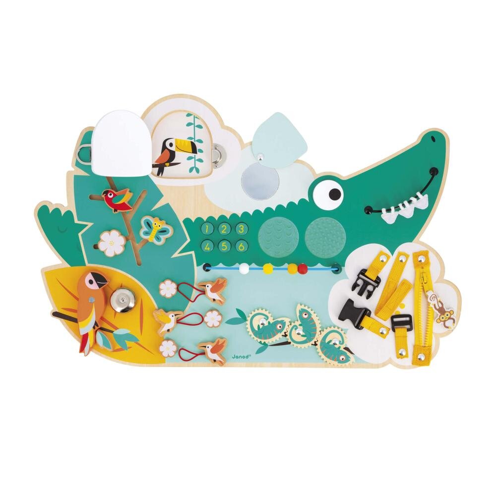 Janod Tropik Drevená motorická doska s aktivitami Krokodíl