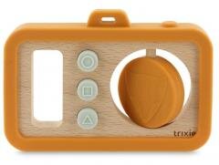 Ogromne uśmiechy i zabawne miny to idealne towarzystwo dla aparatu stworzonego specjalnie dla maluszków! Lekki, z zaokrąglonymi krawędziami i łatwym do chwycenia, ten gryzak oferuje wiele funkcji, takich jak miękkie przyciski z silikonu i obracający się dysk ze zwierzątkami. Dziecko może ćwiczyć umiejętności manualne oraz koordynację ręka-oko, robiąc kilka "zdjęć". Skład: Drewno bukowe - 100%, silikon Rekomendowany wiek: 0m+