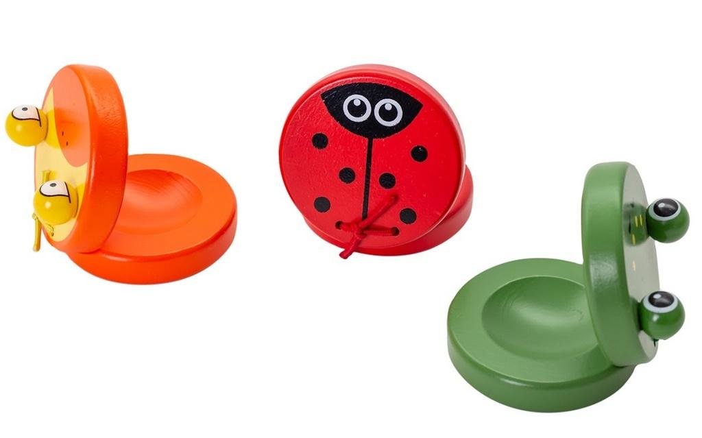Mix wzorów, towar wysyłany losowo.Drewniane kastaniety żabka, kaczuszka i biedronka sprawdzą się jako jeden z pierwszych instrumentów dla Twojego dziecka.Są łatwe w obsłudze, dobrze wykonane i doskonale dopasowane rozmiarami do małej dłoni.Kastaniety mają zabawny ząbek i są pięknie pomalowane....