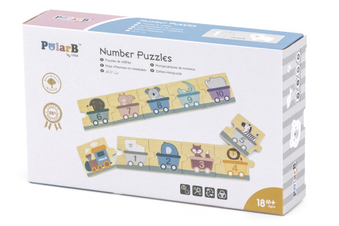 Dřevěná hra se skládá z 20 barevných prvků: 10 s čísly a 10 s různým počtem zvířátek. Na rubové straně jsou nakresleny vagóny se zvířátky a čísly. Úkolem dětí je správně spojovat dílky skládačky tak, aby se shodovala čísla a počet zvířátek. Nebo vytvořte vlak z vagónů s čísly v sestupném nebo vzestupném pořadí. Rozměr balení cca 22 x 13,5 x 5 cm. Věk 18m+