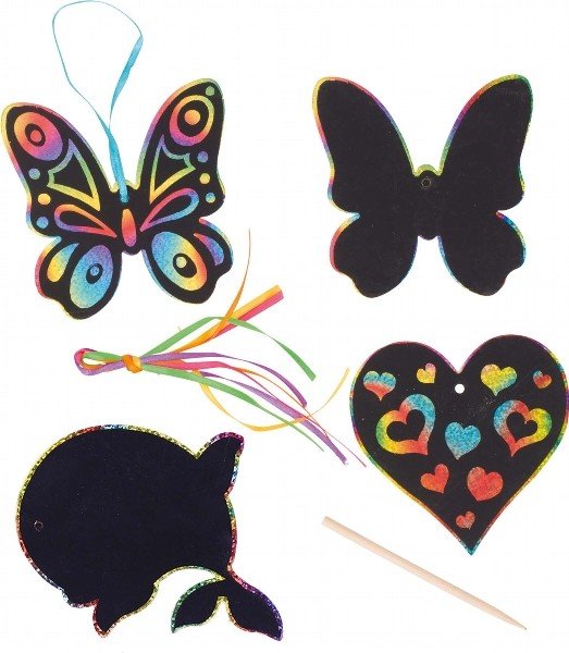 Každé balenie obsahuje drevené škrabátko, farebné stužky na jednoduché zavesenie hotových výtvorov a štyri motívy na vyškrabanie: motýľa, ryby, kvety a srdce. Šablóna srdca má rozmer 9,7 cm, čo je ideálna veľkosť pre deti od 3 rokov. Vďaka tomuto kreatívnemu setu môžu deti rozvíjať svoju predstavivosť a zároveň sa zabaviť tvorbou originálnych obrázkov, ktoré si môžu vystaviť doma ako dekoráciu.