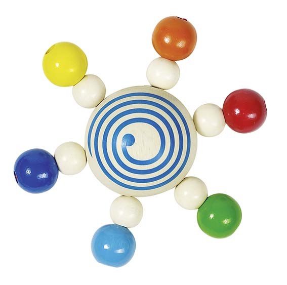 Jednoduché a lehké chrastíko hvězdice, miminku se dobře drží. Chrastítka Heimess jsou ošetřena jemnými a zářivými barvami na vodní bázi. Lazurové barvy nechávají viditelnou jemnou strukturu letokruhů přírodního dřeva. Chrastítka Heimess podporují psychomotorický vývoj dětí, uchopovací reflexy a...