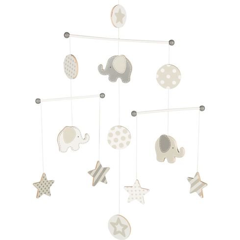 Dřevěný závěsný kolotoč s prvky z filcu zaujme miminka roztomilými obrázky slonů a hvězdiček. Kolotoč se mírně otáčí s pohybem vzduchu, a tak je pro děti velmi zajímavé a uklidňující kolotoč pozorovat.Vytvořte v dětském pokoji ještě příjemnější atmosféru s touto krásnou, originální dekorací...