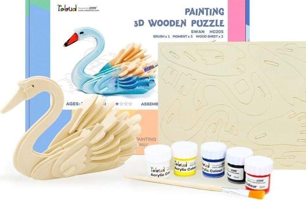 Puzzle drewniane 3D Do Malowania Łabędź