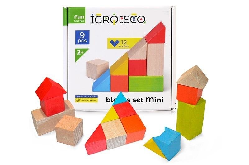 W zestawie: 9 drewnianych klocków w różnych kształtach i kolorach, wym. Opk: 21 x 15 x 7 cm., 2+ prečítať celé