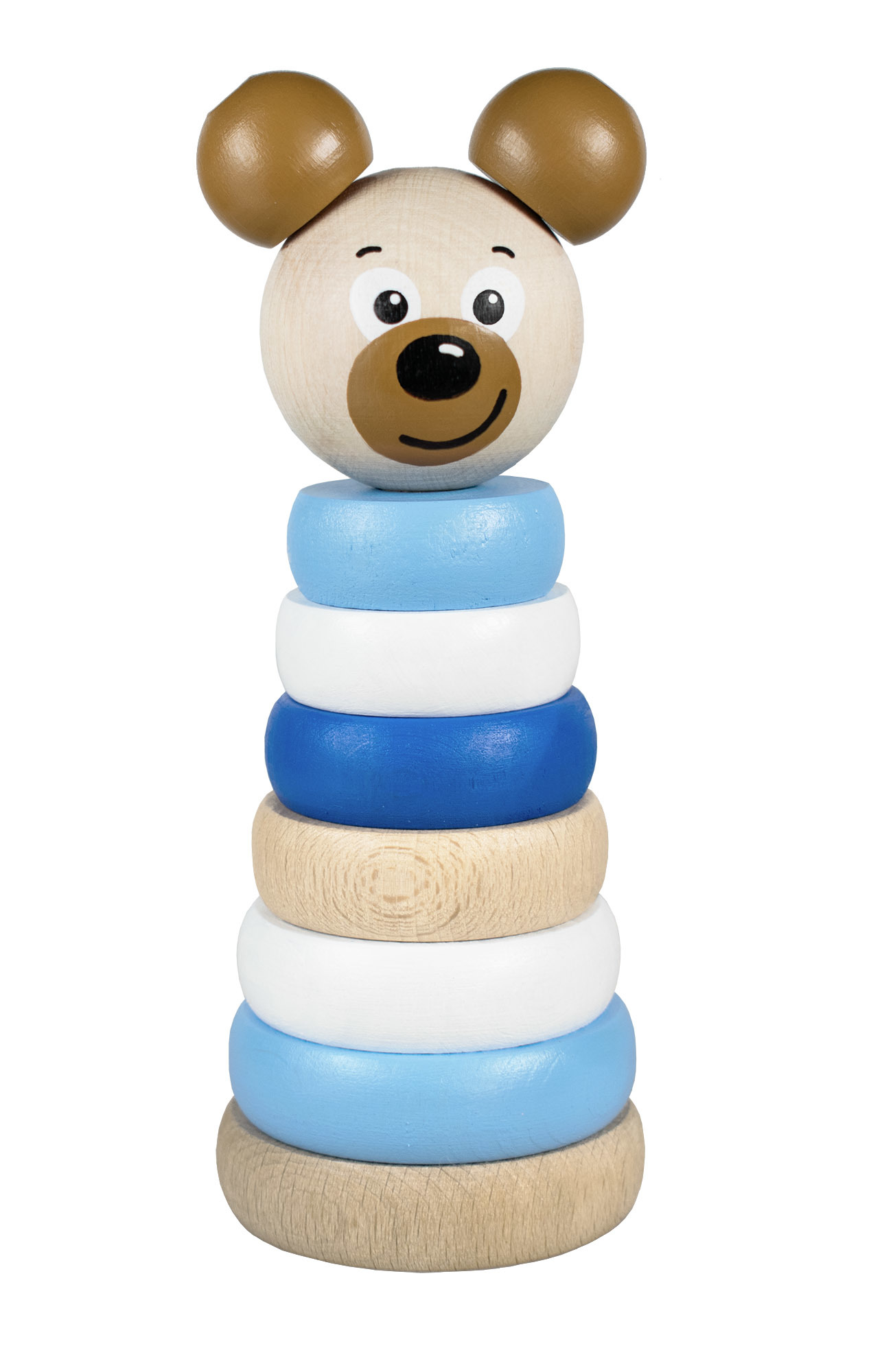 Dřevěná skládací pyramida s motivem méďi, rozvijí představivost, logické myšlení a motorické schopnosti dítěte. Výrobek splňuje požadavky EU na bezpečnost hraček a je vhodný pro děti od 1 roku. Rozměry výrobku jsou 140 x 55 mm. Výrobek je balen v ekologické papírové krabici.