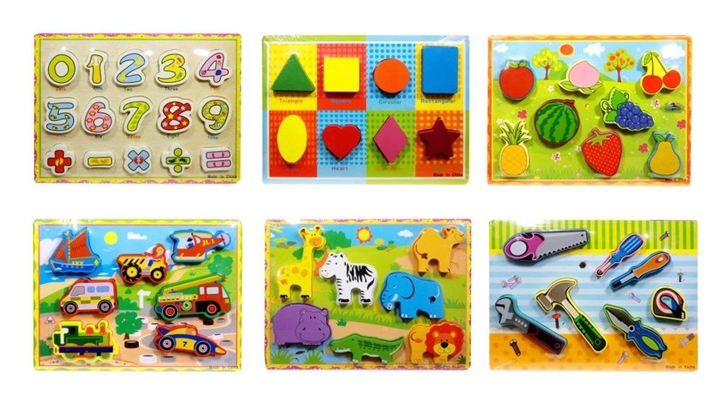 Drewniana układanka dla dzieci w różnych wzorach. Pomoże rozwinąć u najmłodszych dzieci logiczne myślenie. Układanka dostępna w 14 wersjach: ze zwierzetami, pojazdami, owocami, narzędziami, cyframi. Produkt występuje w kilku wersjach, wybierany losowo. Cena dotyczy jednej sztuki. Produkt przeznaczony dla dzieci 12 miesiąca życia.