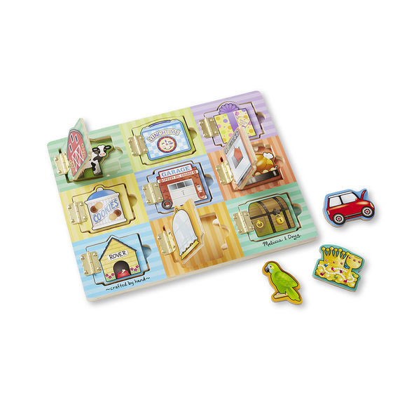 Tato magnetická dřevěná deska obsahuje 9 výklopných dveří. Pokud se otevřou, objeví se magnetický barevný dílek.Posunujte a hádejte, kam patří. Tato dřevěná deska rozvíjí jemnou motoriku, procvičuje paměť a učí děti poznávat svět kolem nás.Vyrobeno z kvalitního dřeva.Rozměry: 30,5 x 23 x 1,5 cm.Vhodné pro děti od 3 let.
