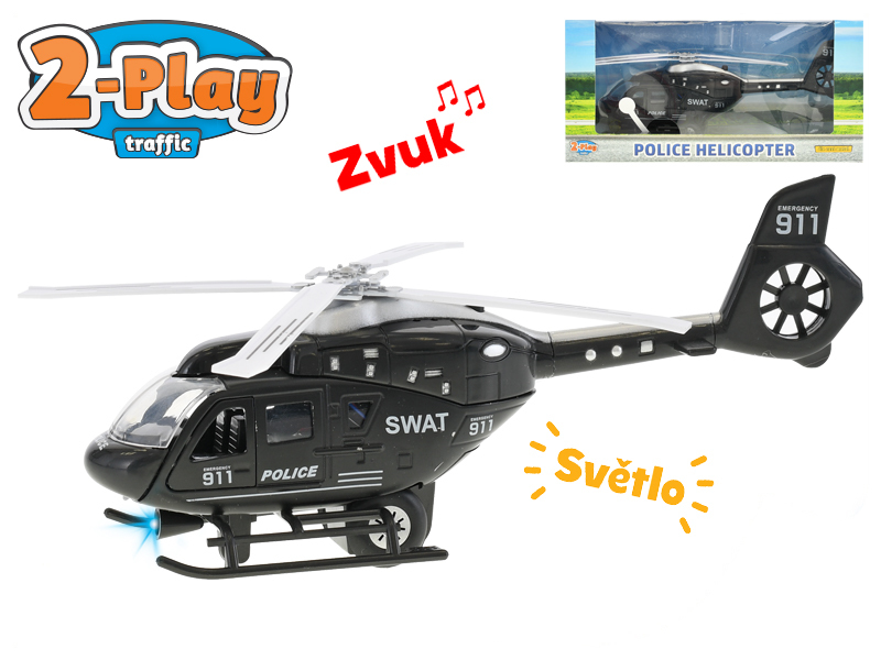 Vrtulník policejní 22cm kov 2-Play na zpětný chod na baterie se světlem a zvukem v krabičce