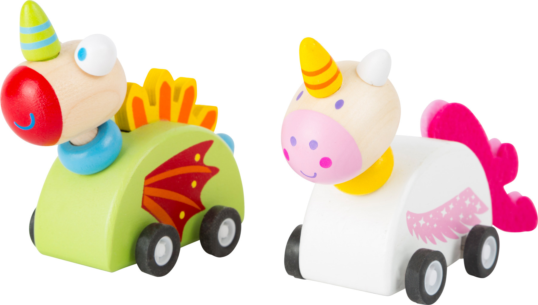 Rychle a zběsile s drakem a jednorožcem. Krásná natahovací autíčka jsou vyrobena ze dřeva pocházejícího z lesnických společností, které se zaměřují na udržitelnou péči o lesy. Autíčka jsou tichá díky pogumovaných kolům. Ať už drak nebo jednorožec, tuto hračku si...