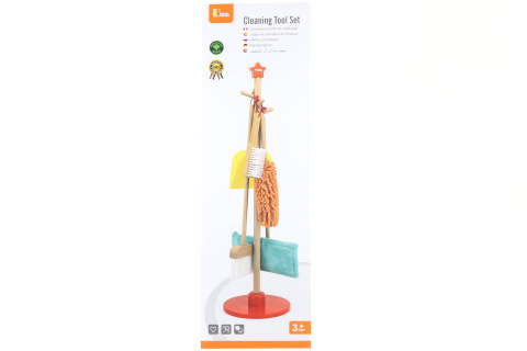 Dřevěná uklízečka obsahuje stojan, koště, mop, prachovku, lopatku a smetáček. Rozměry cca 84,5 x 23,5 x 23,5 cm. Rozměr balení cca 85 x 27 x 11 cm. Věk 3+ prečítať celé