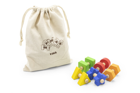 Tato sada 40 ks obsahuje 20 párů matic a šroubů v 5 jasných barvách a tvarů. Baleno v látkovém sáčku. Rozměry balení 21x14x6 cm. Velikost šroubu cca 5 cm. Věk 2+ prečítať celé
