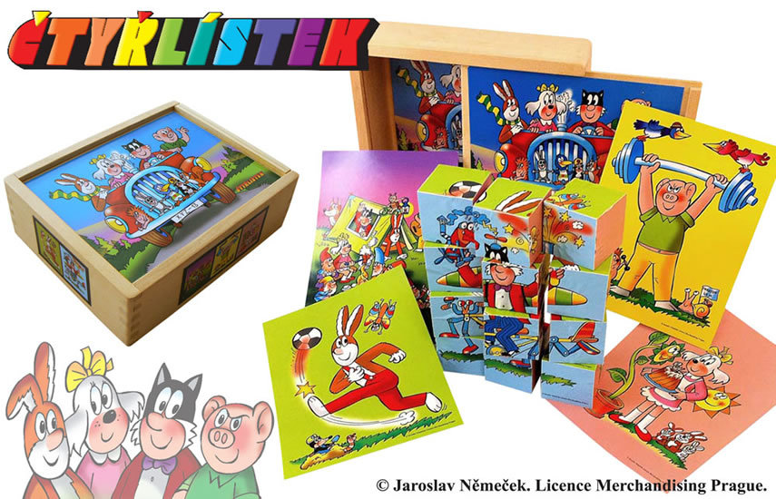 Dřevěné kostky - kubus - 12 kusů v krabičce. Motivy s oblíbenou partou Čtyřlístek. Rozměry balení: 16.50 x 13 cm. Určeno pro děti od 2 let. prečítať celé