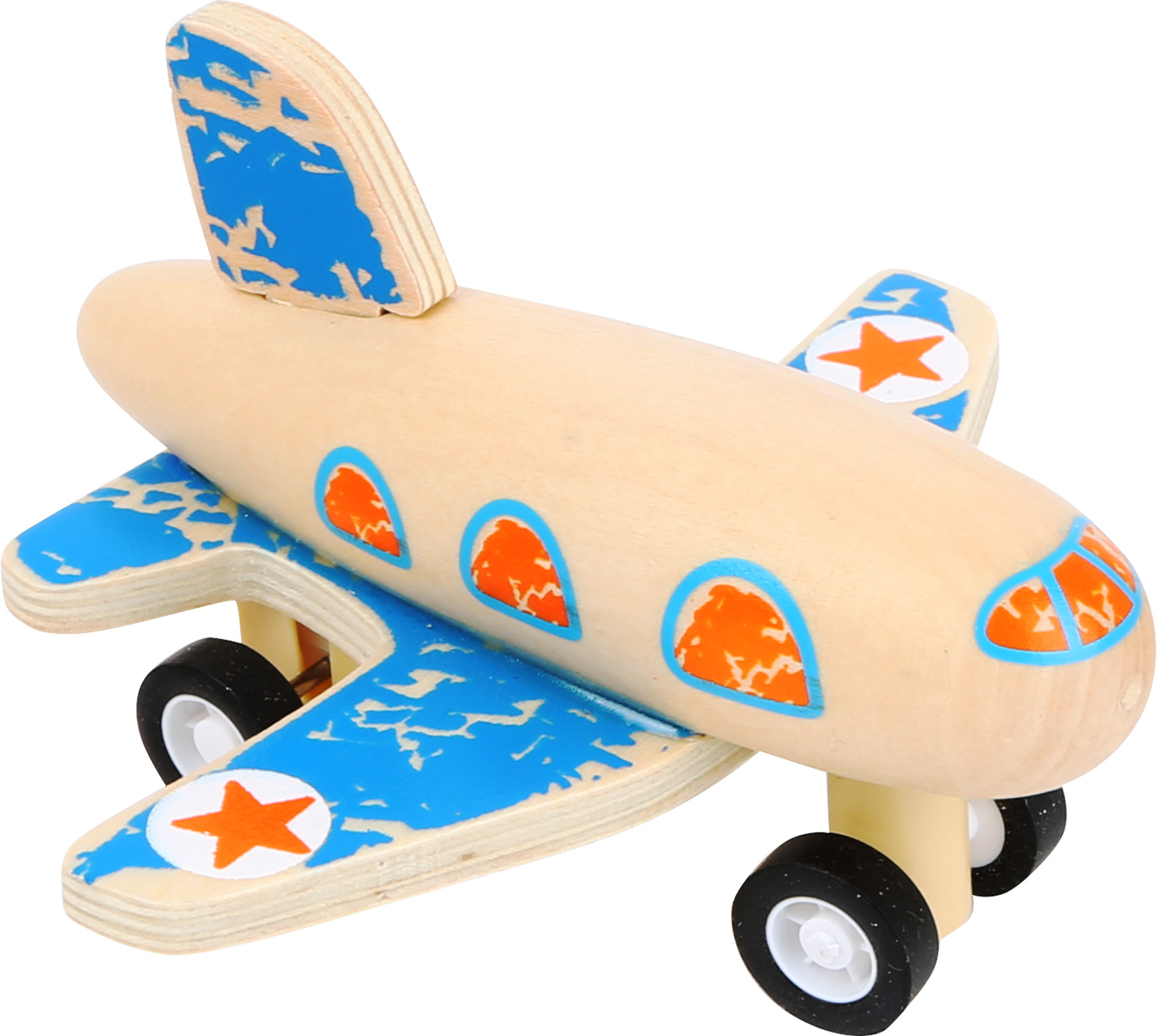 Právě se díváte na bestseller. Toto barevné letadlo vyrobené ze 100% certifikovaného dřeva je natahovací a má gumová kolečka, která zajišťují tichý chod. Kdo bude nejrychlejší?