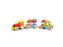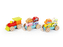 - Set obsahuje 14 dielov: vláčik so dvoma vozňami a 8 autíčkami.