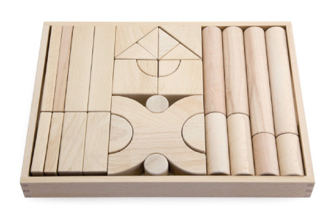 Dřevěná sada kostek na dřevěném podnosu. Rozměry sady cca 39,5 x 29,5 x 4 cm. Věk 24m+ prečítať celé